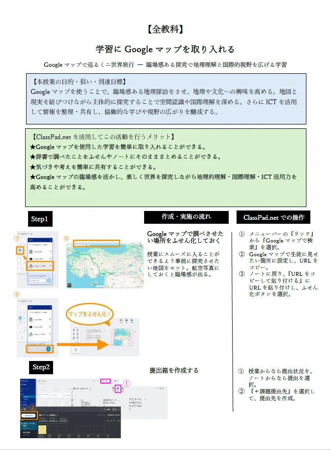 今回はClassPad.netとGoogleMapを使用して地理探究的な授業案を作成しました!