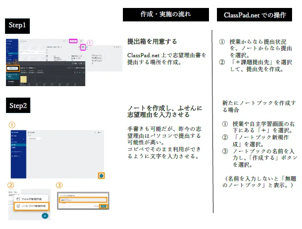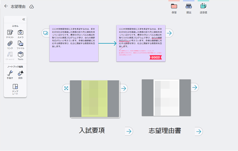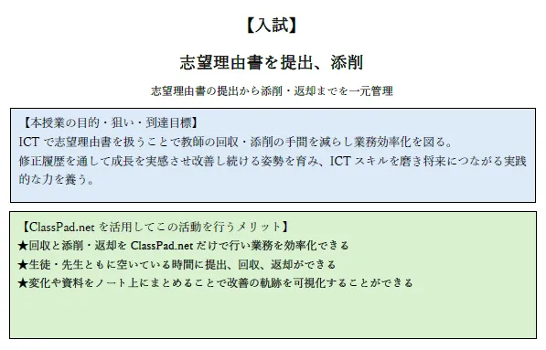 入試に欠かせない志望理由書の提出から添削・返却まで、すべてClassPad.net上でスマートに管理!